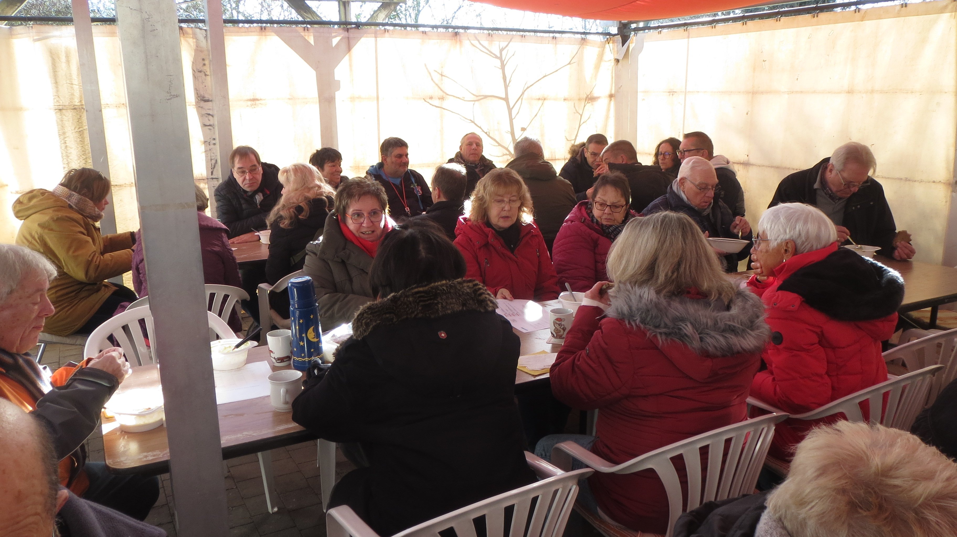 Glühwein und der sehr leckeren Erbsensuppe wurde gut zugesprochen, sodass nichts übrig geblieben ist. Dieser schöne Erfolg war für die Nörgis